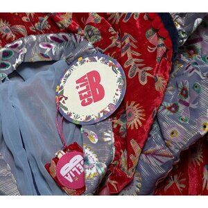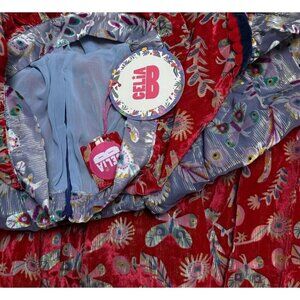 Celia B Sz L Skirt Blue Red Velvet Metallic Floral Midi Maxi CeliaB New NWT