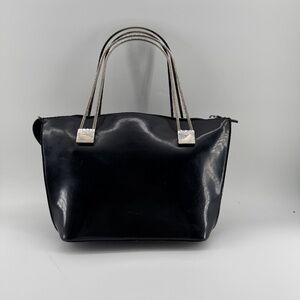 Celine Black Patent Leather Tote Bag with Silver Handles