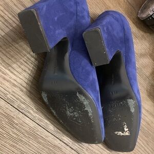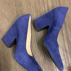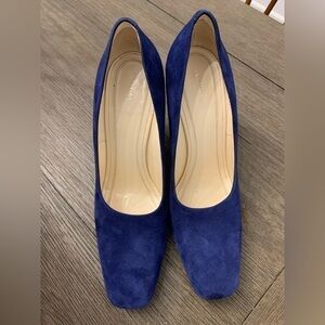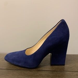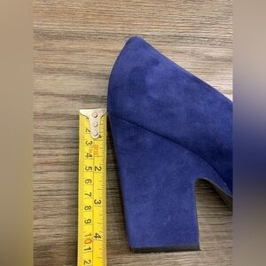 Chic deep blue suede heels by Celine. Perfect for elevating any outfit.