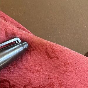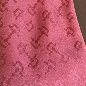 CELINE Paris tie, crafted from 100% silk and handmade in Spain . The deep burgundy hue features a subtle jacquard pattern with Celine’s signature horsebit logo — a refined nod to the brand’s Parisian heritage.