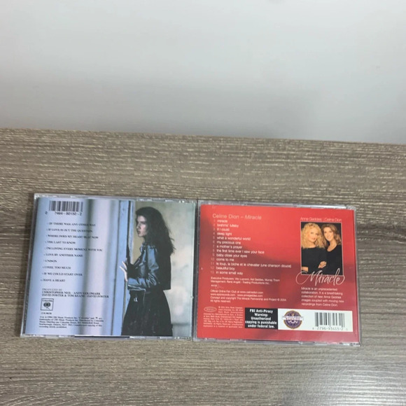 Celine Dion CD's Unison & Miracle (Celine Dion Anne Geddes) Lot Of 2 USED features a collection of pop music by the iconic artist Celine Dion. This album, in CD format, includes a mix of her popular hits and enchanting melodies. Perfect for fans of Celine Dion's signature style, this lot includes two well-loved albums that showcase her talent and versatility. Ideal for music enthusiasts looking to add some pop flair to their collection, these CDs offer a memorable listening experience with each track.