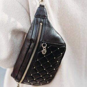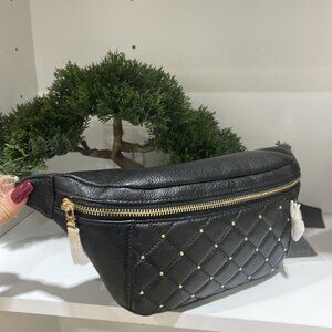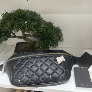 Carry your essentials close with this quilted leather belt bag by Celine Dion. Featuring an adjustable waist strap with chain details!
