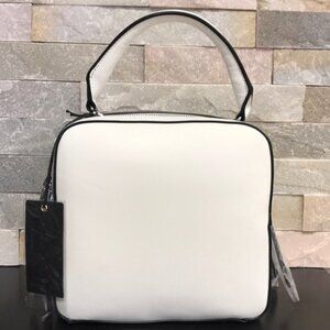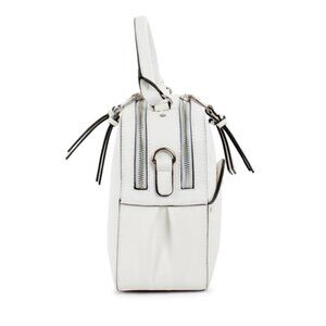 Dual zip-top compartments keep essentials beautifully organized, while the rolled top handle and optional shoulder strap provide styling versatility.