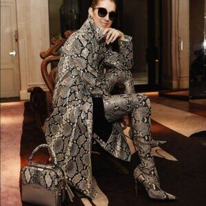 Celine Dion Motif Top Handle Snake Embossed PU Bag