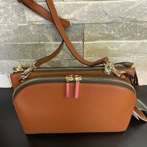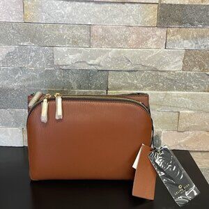 Richly grained calfskin leather brings luxe appeal to a chic crossbody bag furnished with a well-organized interior and handy exterior zip pocket.