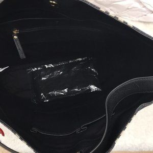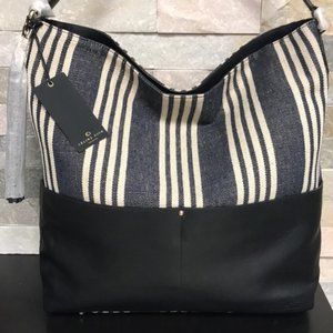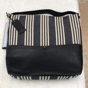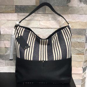 Large leather and canvas hobo bag with removable tassel