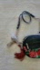 Mini crossbody bag features zip top entry with crimson red tassel zipper pull