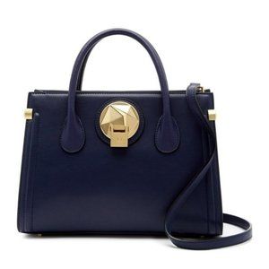 Effortless chic with a touch of sophistication, brushed-goldtone hardware shines against the rich leather, while the roomy interior offers enough space for essentials.