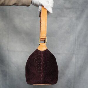 Celine Macadam Bordeaux Suede Handbag – Brown Leather Handle