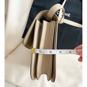 Celine Medium Box Bag in "Dune" Grained Goatskin Leather with Gold Hardware.