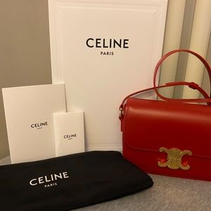 100% authentic, mint condition Celine Teen Triomphe bag in red shiny calfskin.