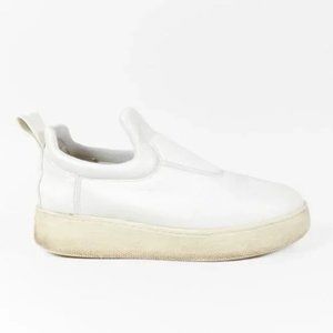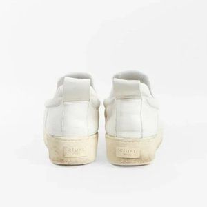 Celine White Leather Platform Slip-On Sneakers