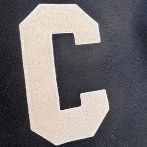 Very good condition with minor stain & wear on leather arms and shoulders and slight darkening on logo