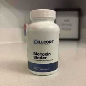 CellCore BioToxin Binder with 120 capsules. Supports microbiome and detox. Sealed with expiry date of 11/26. 3 available. Retails for 105$ Canadian.