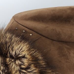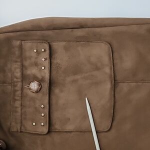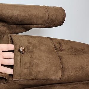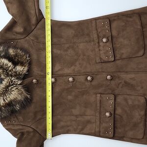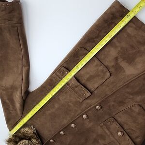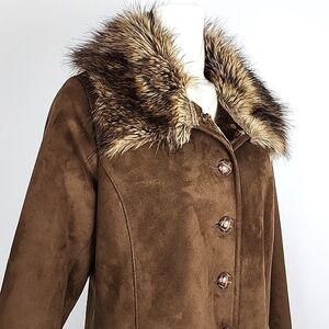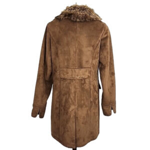 Centigrade Women's Long Faux Suede Button Up Winter Coat Faux Fur Collar Sz M