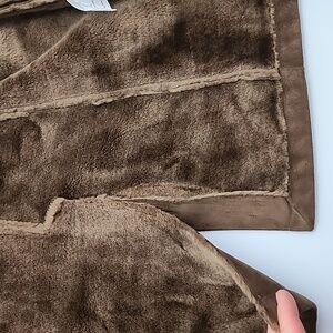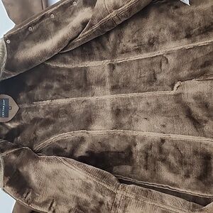 Excellent pre-owned condition, luxurious Centigrade women's long faux suede button up winter coat with a rich faux fur collar, toasty warm plush faux fur interior lining and two front pockets, size Medium.