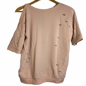 Central Park West Distressed Ripped Retro Peach T-Shirt Short Sleeve Small S