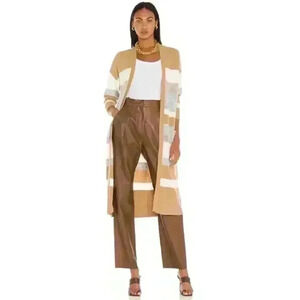 Central Park West | Long Cardigan Striped | Beige/Tan | Large | New without tag