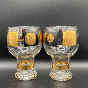 Cera Beer Glass x4 clear with black and gold coin pattern designed by Bob Wallack VTG MCM 1960's USA. 2 x excellent condition, 2x loss of gold on base. Approximate size: 996g/x4; 14cm/5.5" H x 10cm/4" D.