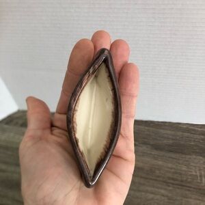 I believe this is the smallest of a serving bowl set of three. Based on research these are handmade by Susan Robertson who is well known for her nature inspired creations. Super cute addition to a miniatures collection or a gift for someone who loves canoes!
