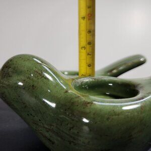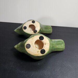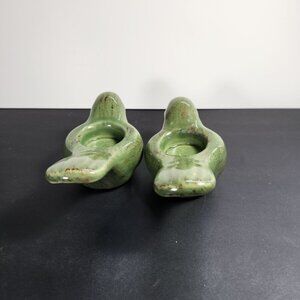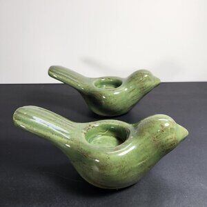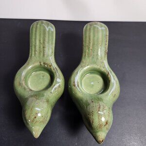 Ceramic Bird Candle Holder Tea Light Jade Green with Flecks of Brown Set Of 2