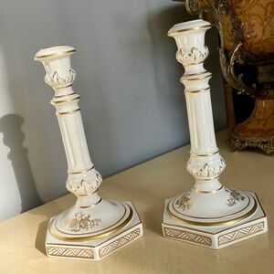 Ceramic Candlesticks Cream with gold accent. Made in Italy.