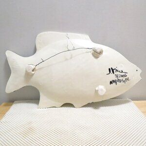 Ceramic Centerpiece Bowl Fish Handmade Signed Wall Plaque Hanging 19" x 10.7"