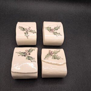 Vintage Set of 4 Ceramic Christmas Napkin Rings | Holly & Ivy Design