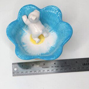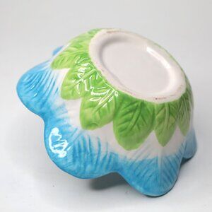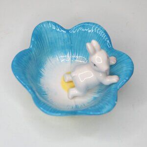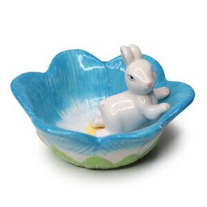 Ceramic Flower Bunny Bowl Trinket Easter Nut Candy Dish Blue Green White