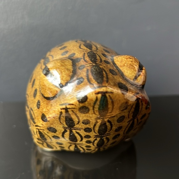 Ceramic Frog Tonala Mexico Pottery Hand Painted Cute Stylized Toad Figurine