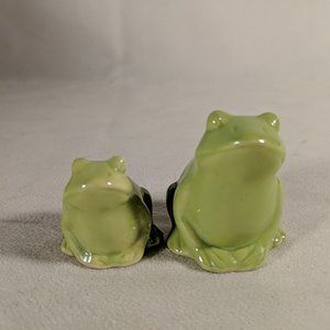 Ceramic Frogs Salt & Pepper Shakers Green Chinese Frogs Cottage Spring Summer