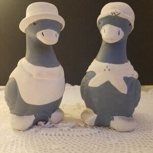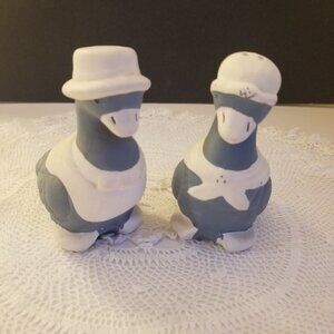 Ceramic Geese Salt and Pepper Shakers Collectible Geese Blue and White Vintage