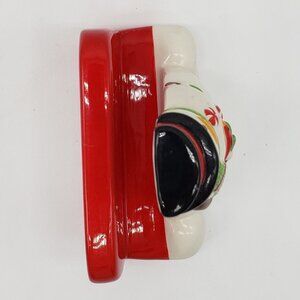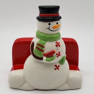 Ceramic Hand Painted Top Hat Snowman Holding Cardinal Bird Napkin Holder