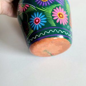 Ceramic Hand painted Mexican bright colors vase with birds and floral design.