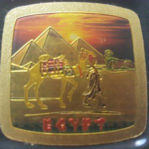 Ceramic Magnet Fridge Egyptian Pharaoh souvenir featuring the Pyramids, camel & Sphinx (Approx. 2IN x 2IN or 5CM x 5CM).