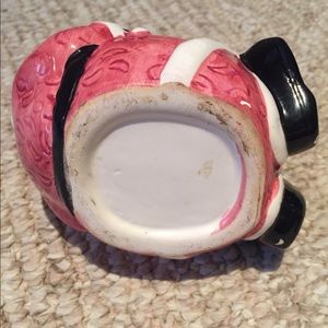 Could be used as a tiny planter or to hold candies. Ceramic Santa, would sit in the palm of a hand in terms of length.