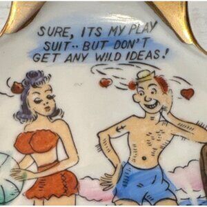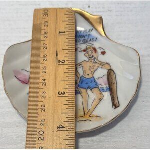 Ceramic Trinket Dish Ashtray Shell Vintage Risque Adult Humour Play Suit 4 x 4”