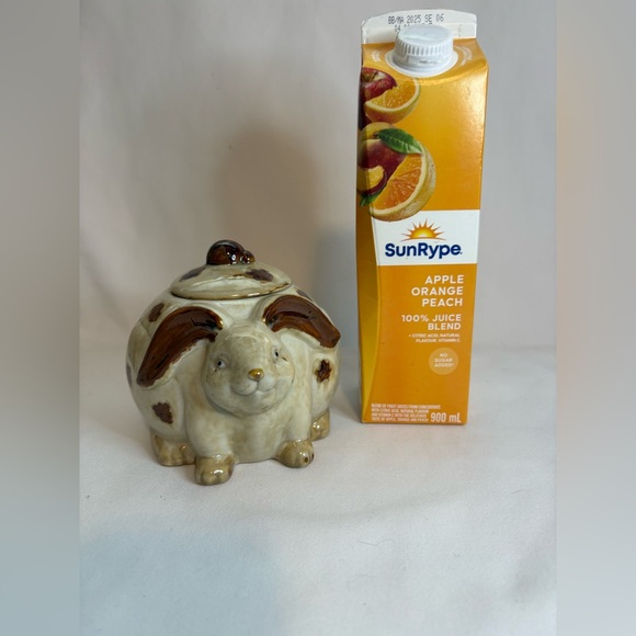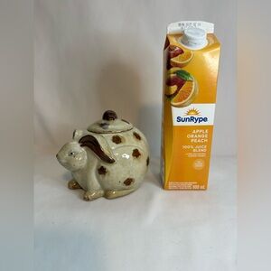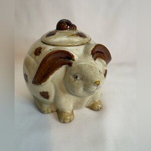 Ceramic lidded Rabbit/ bunny jar. Measures 6.5” long x 5” high x 4.5” wide. Great kitchenware… home decor.. home accents..