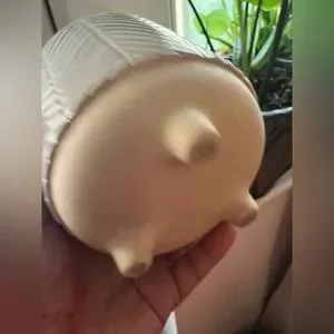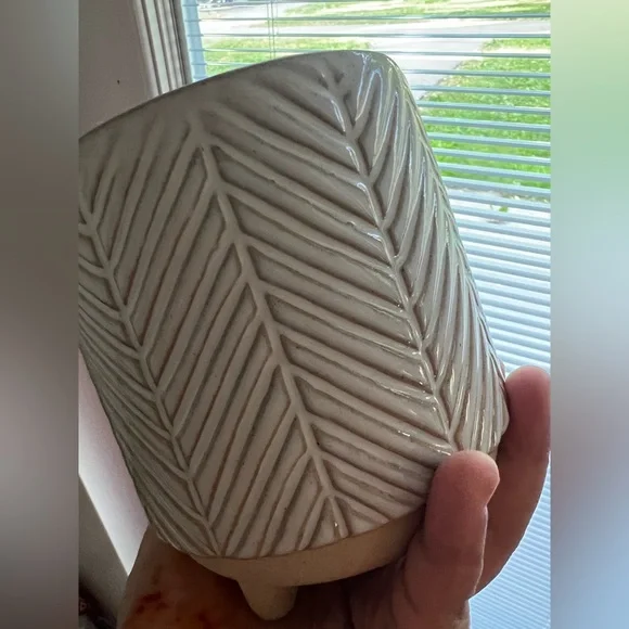 3 footed nice ceramic planter with pattern. No drainage holes, great as pot cover. Used it a little last year, no such sign of usage. Looks good as brandnew.