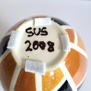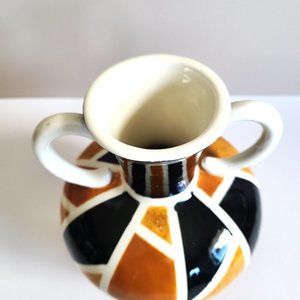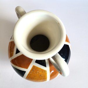 8'' tall, 5.5'' wide. Has a midcentury look. Beside a couple small imperfections on the handles it's in great condition.