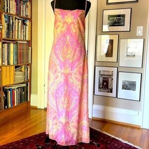 Cerruti 1881 Maxi Dress Paisley Print Slim Spaghetti Strap Back Zip Pastel 2/4