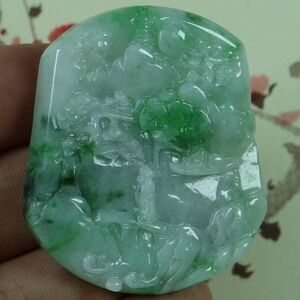 Cert'd Green 100% Natural A Jade jadeite Pendant Landscape Character 山水人物