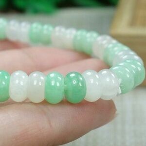 Certified Green+Icy White 100% Natural A Jadeite jade Beads Bracelet 手链