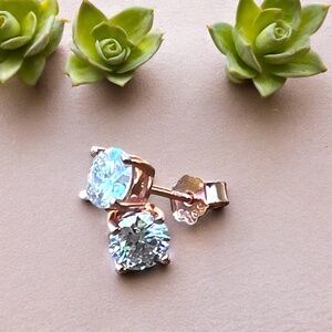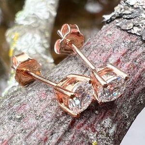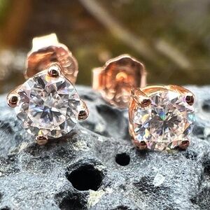 Certified Moissanite Stud Earrings 14K Rose Gold Vermeil , Top Grade D VVS