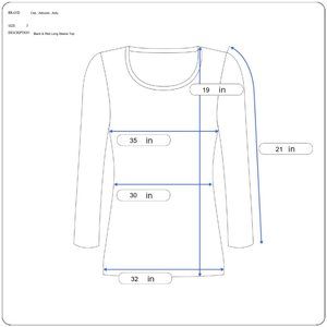 Ces...Astures...Astu Black & Red Long Sleeve Top in Size Medium was bought in France where it is made. A body fitting top with a scoop neckline is in excellent pre-owned condition with no flaws. Measurements in photos - note measurements taken flat and unstretched. Waist, Hip and armpit to armpit (chest) is then doubled.