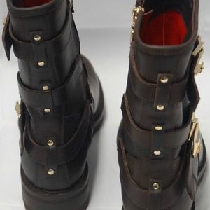 Elevate your casual look with these stylish ankle boots from Cesare Paciotti. Crafted from high-quality leather, these boots feature a round toe shape and a low block heel, making them perfect for everyday wear. The boots also come with an adjustable strap and buckle, ensuring a comfortable fit for all-day wear. The black color and solid pattern of the boots make them a versatile addition to any wardrobe. The boots are calf-length and have a zipper accent, adding a touch of edginess to the design. These boots are perfect for any casual occasion and will pair well with your favorite jeans or dress.