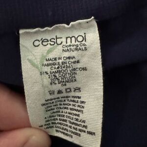 EUC straight leg style legging by Canadian company C’est Moi. These are free size / one size regular - sizes 0 through 12. They appear that they would fit a small/medium well. Navy.