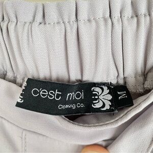 C'est Moi Woven Front Tie Pants Cuffed Jogger Grey Size Medium