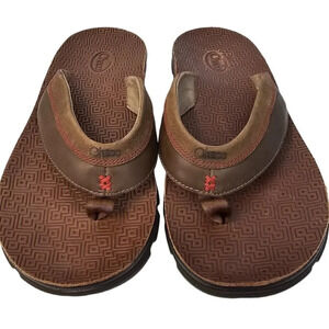 Chaco Mens Kirkwood Dark Earth Leather Sandals Size 9 Brown Flip Flops Slip On