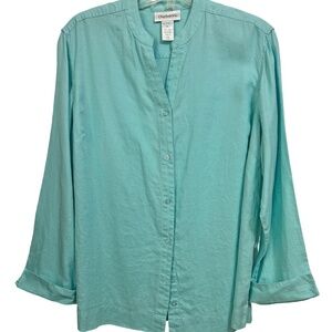 Chadwicks 100% Linen Blouse Top Tunic Long Sleeve Button Front Robin Egg Blue